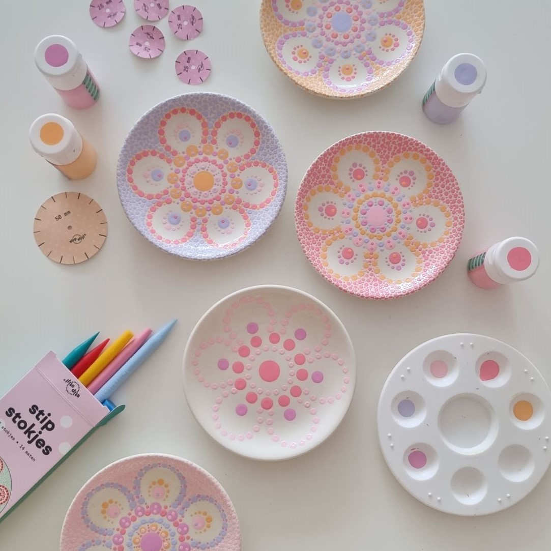 Deze set van 4 bordjes is iets voordeliger voor je. Dit zijn zulke fijne bordjes om te stippen!