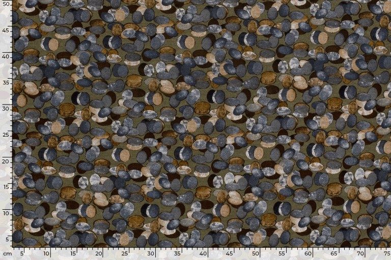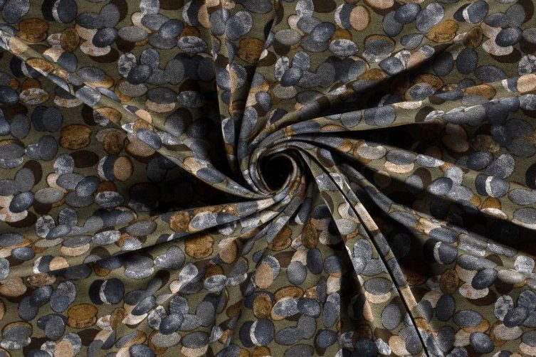 Mooie poly viscose jersey stof met een print van abstracte stippen.