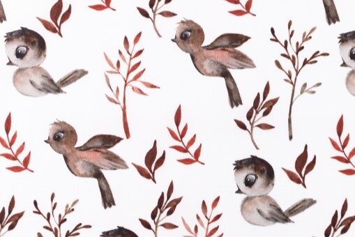 Mooie katoenen poplin stof met een digitale print van vogels.