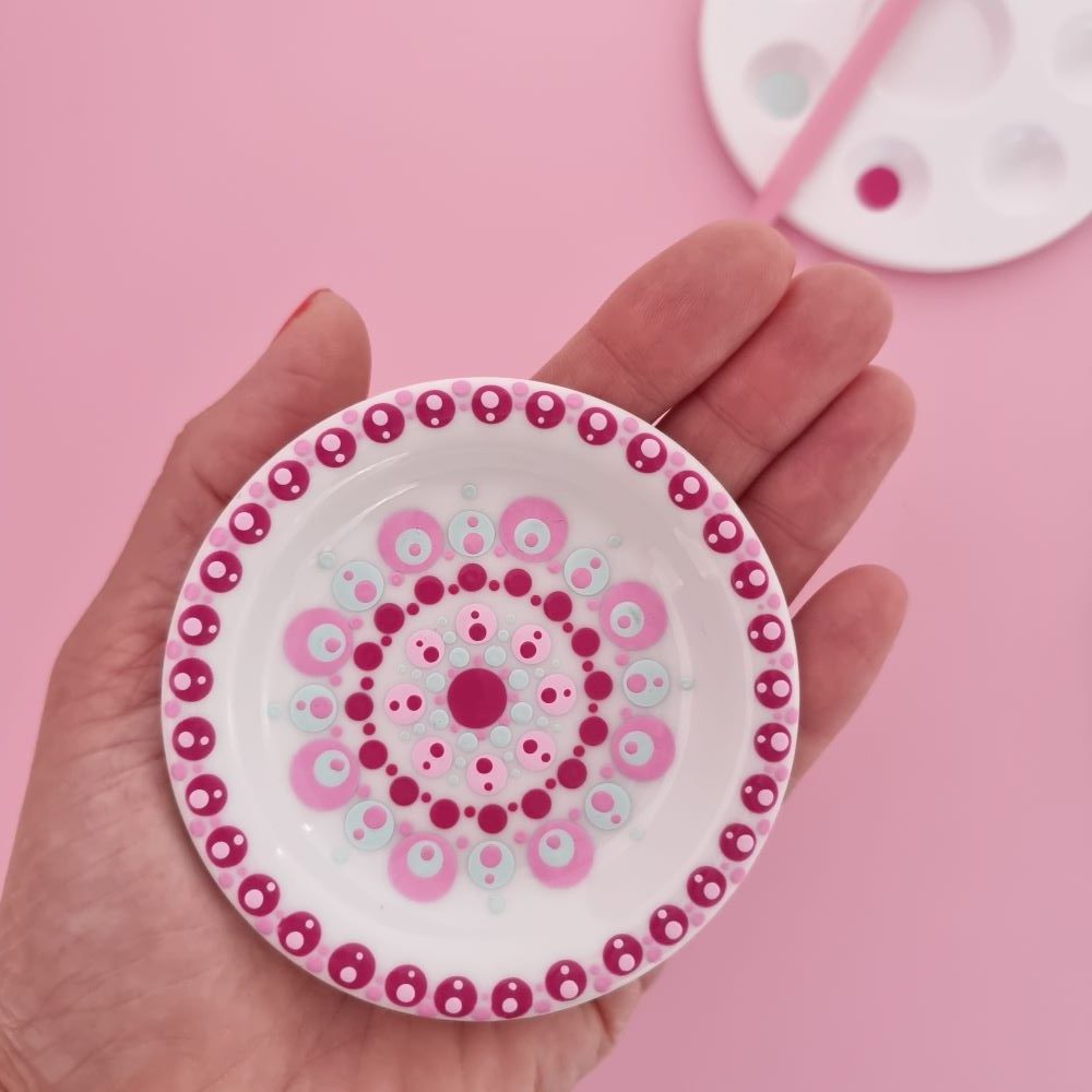 Deze populaire witte tipjes met een plat randje, hebben een diameter van 8,5 cm. De keramiek is van hoge kwaliteit en erg fijn om mooie stippatronen op te maken.