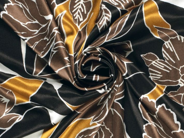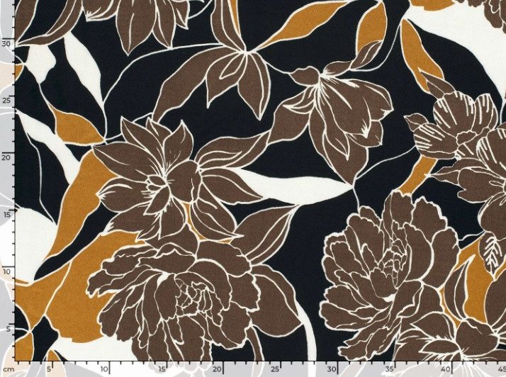 Mooie soepel vallende satijn stof met een print van grote bloemen.