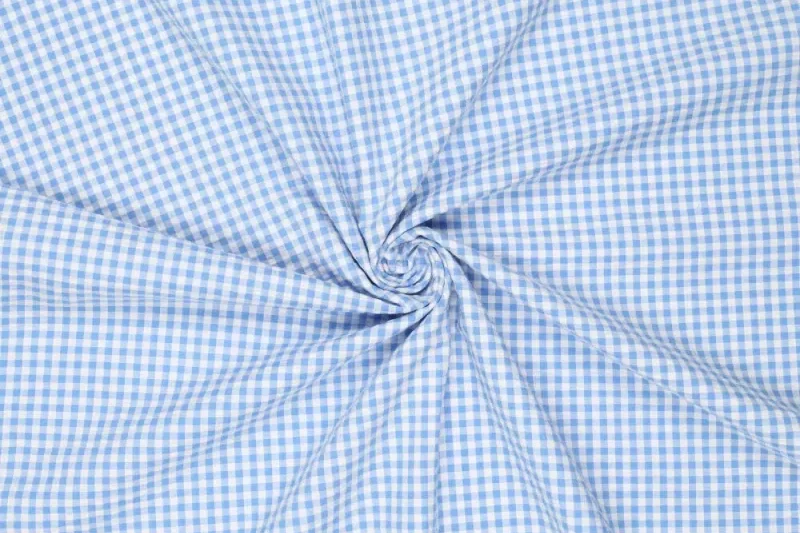 Seersucker katoen stof, ruit, lichtblauw. Y39