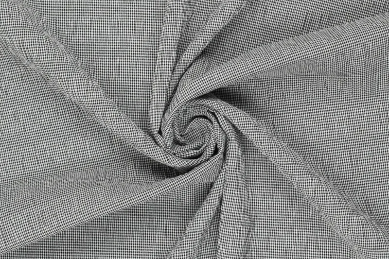 Seersucker smog stof, fijne ruit, zwart/wit. P226