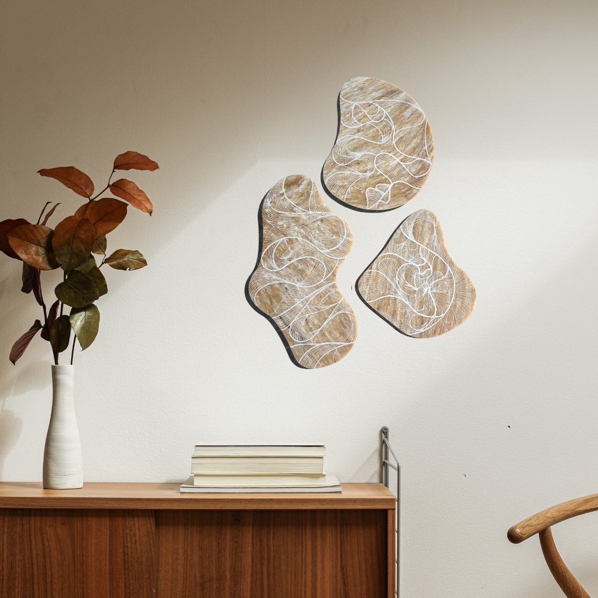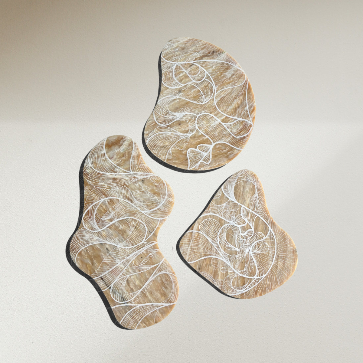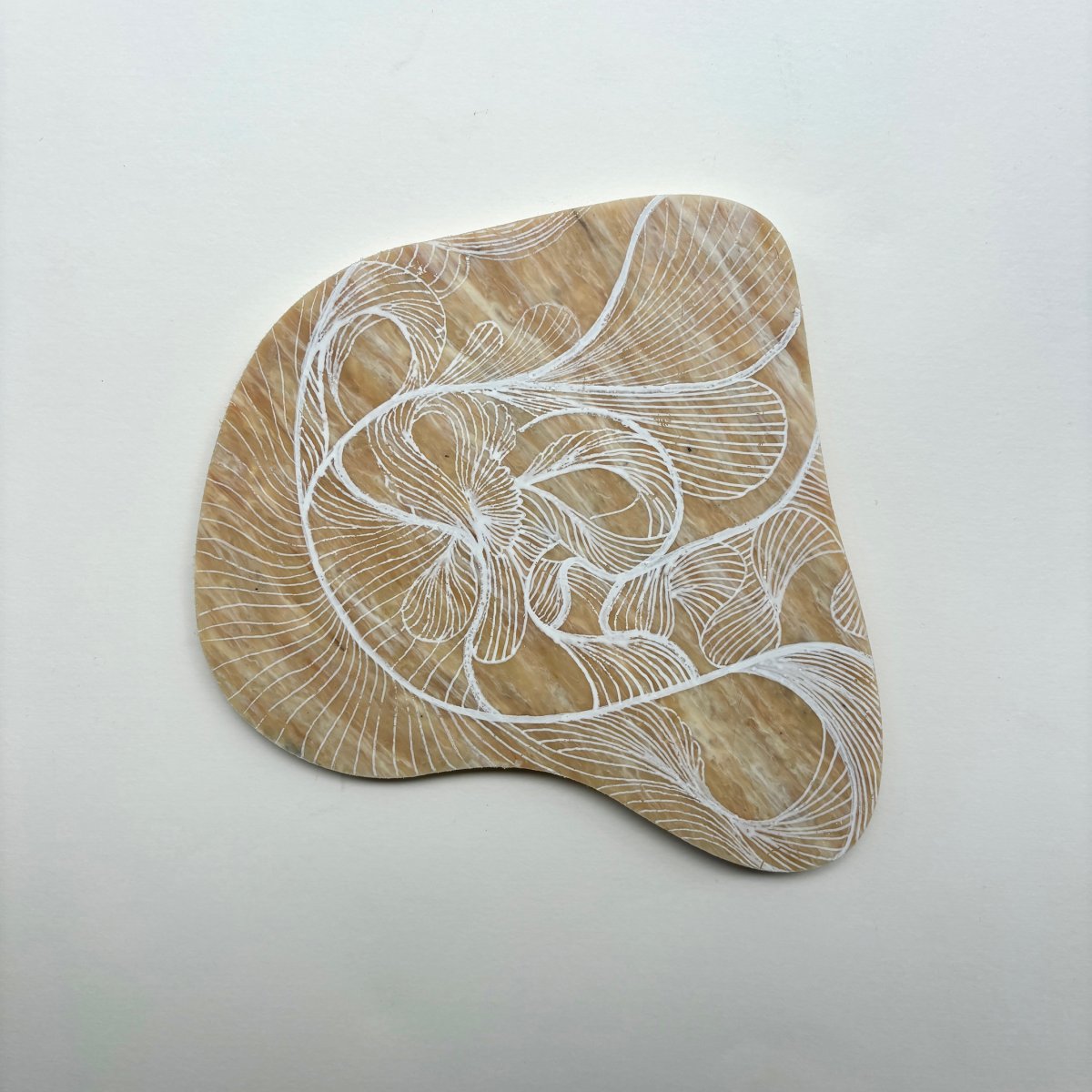 Studio Tosca werkt de plaat vervolgens af en zet er met acrylmarkers de fine line artworks op. Het werk kenmerkt zich door het spel van fijne lijnen. Deze lijnen nemen je stuk voor stuk mee. Brengen je verder of juist terug naar de basis. Bij elkaar vormen ze een geheel, zoals het leven.