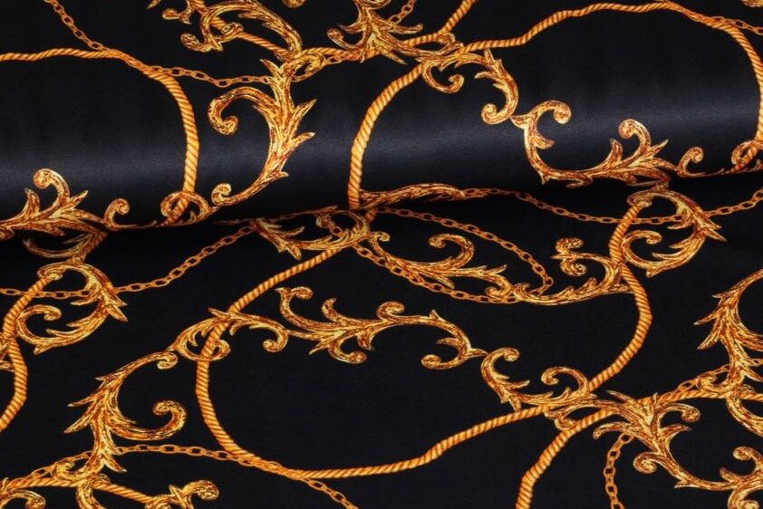 Mooie soepel vallende tricot stof met een digitale print van kettingen.
