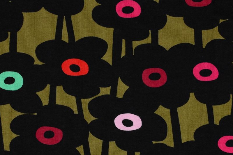 Mooie soft sweat stof met een print van daisychain van Verhees Textiles x Nerida Hansen.