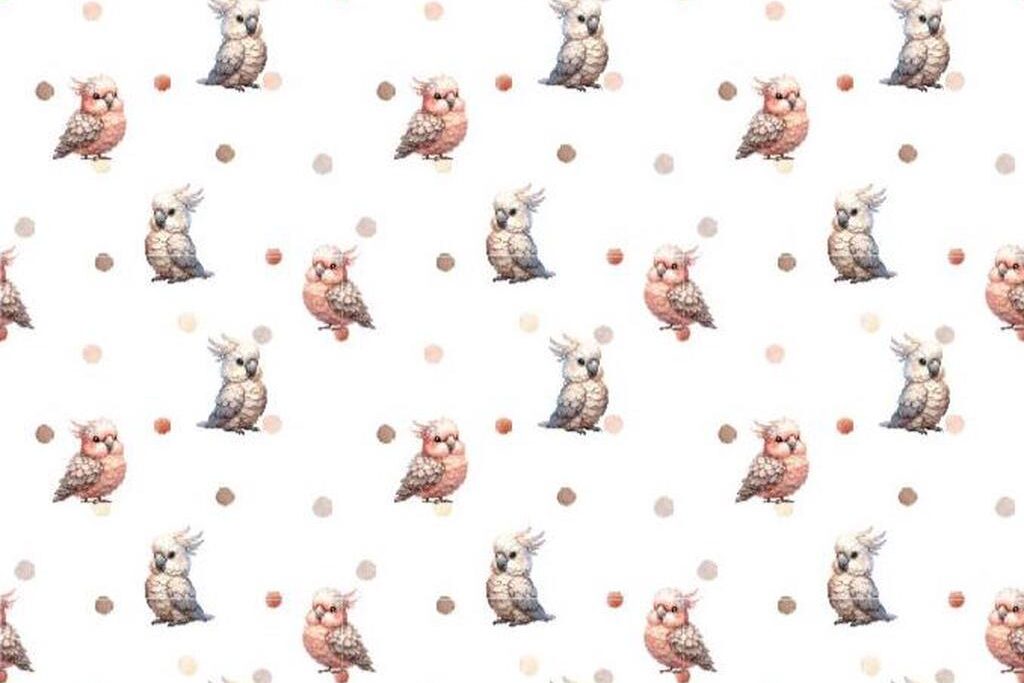Mooie katoen stof met een print van kleine papegaaitjes met stippen van het merk Stenzo.