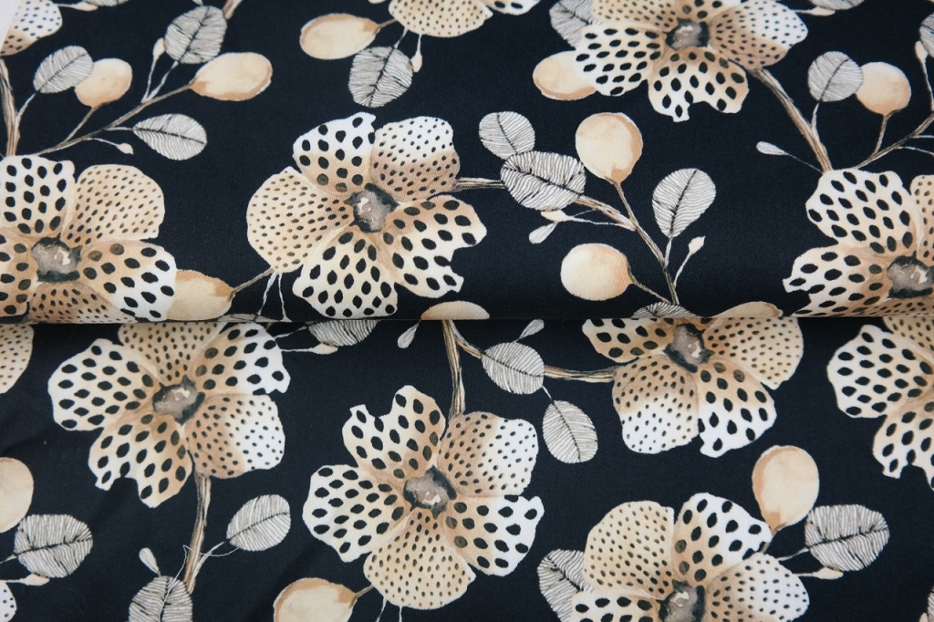 Mooie katoen stretch satijn stof met een bloemenprint van het merk Stenzo.