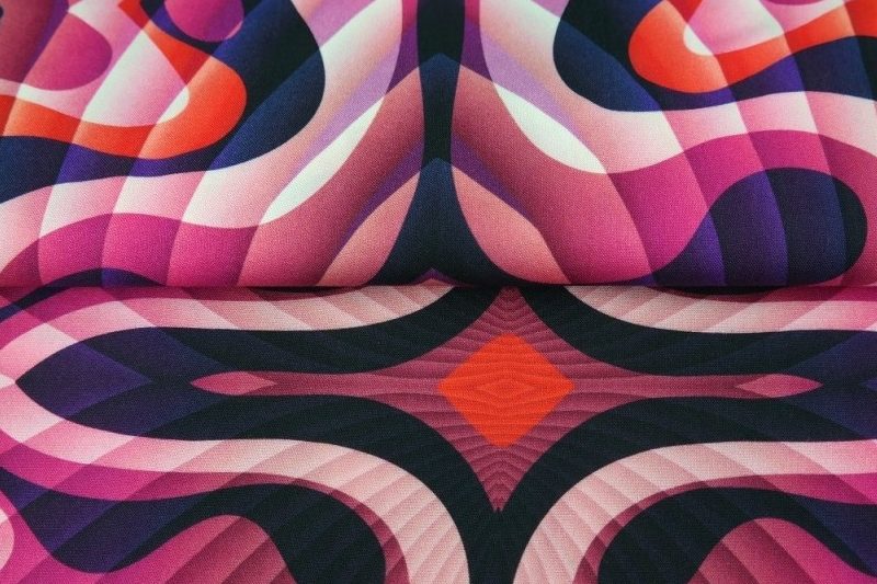Mooie soepel vallende viscose stof met een digitale print van fantasie golven van het merk Stenzo.