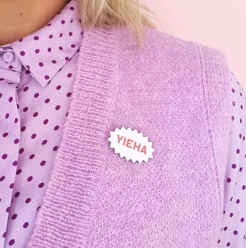 YIEHA: het is mijn typische vreugdekreet, die onlosmakelijk met Stipstijl verbonden is. Deze stijlvolle en veelzijdige pin is niet alleen een geweldige accessoire, maar ook een leuke manier om je liefde voor stippen te laten zien.