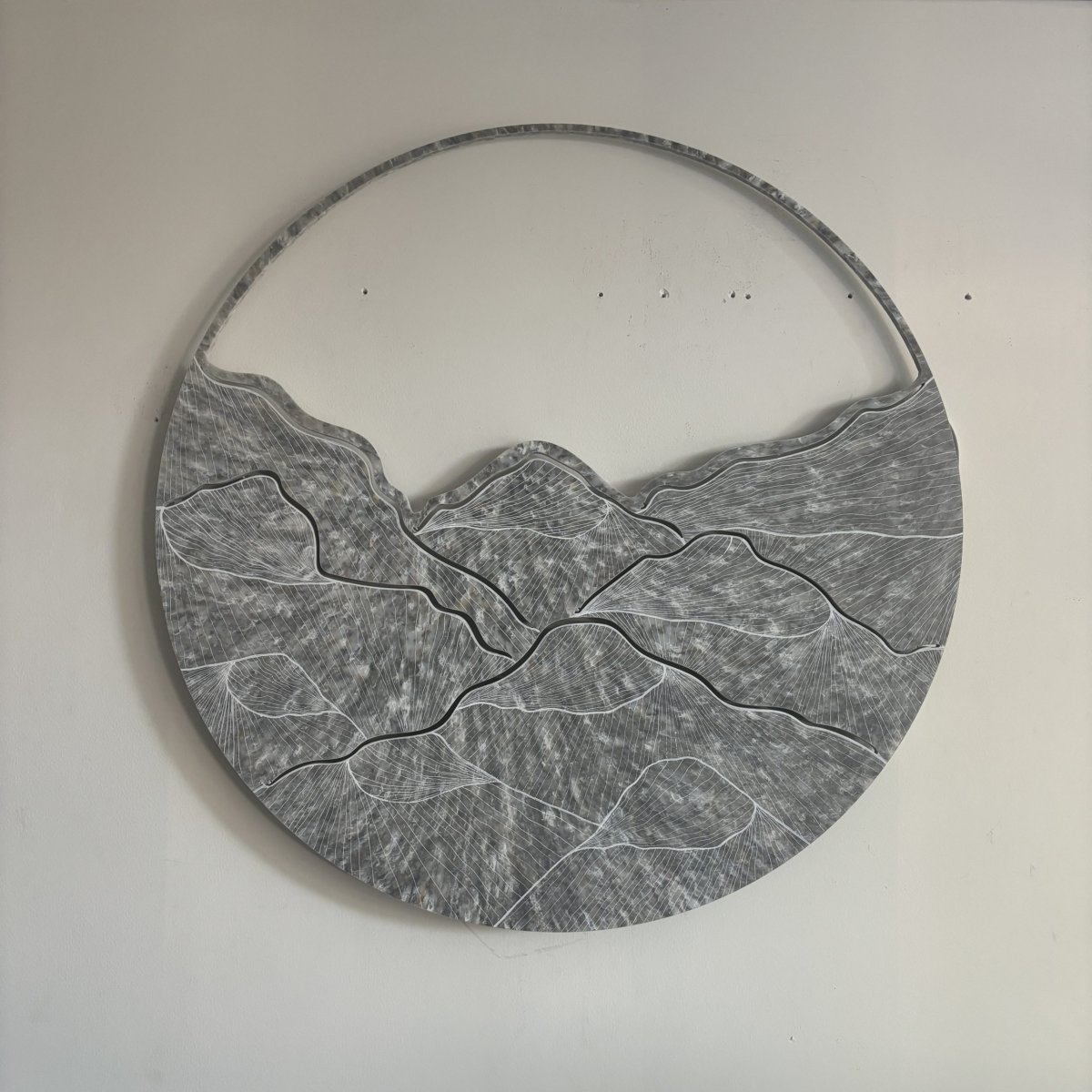 Studio Tosca werkt de plaat vervolgens af en zet er met acrylmarkers de fine line artworks op. Het werk kenmerkt zich door het spel van fijne lijnen. Deze lijnen nemen je stuk voor stuk mee. Brengen je verder of juist terug naar de basis. Bij elkaar vormen ze een geheel, zoals het leven.