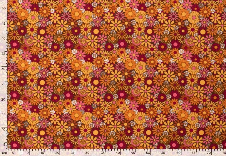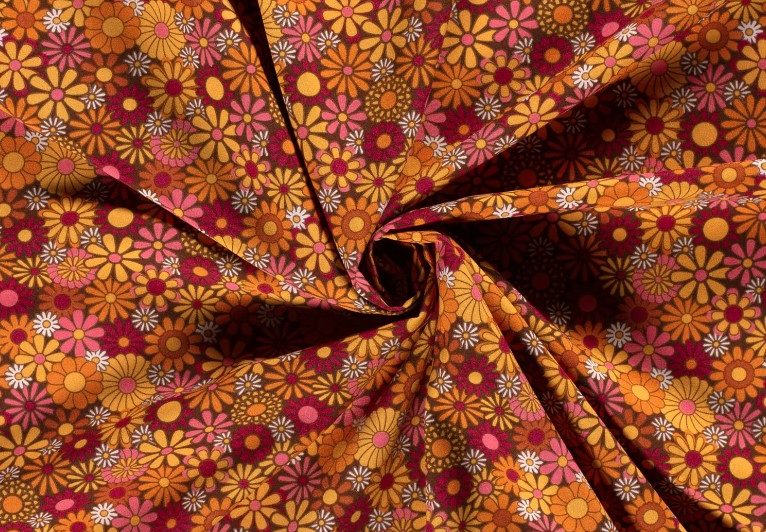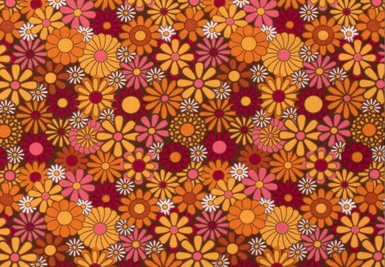 Mooie texture stof met een motief van flower power.