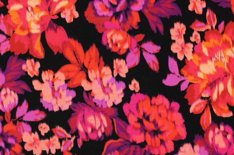 Mooie katoenen tricot stof met een digitale print van bloemen.