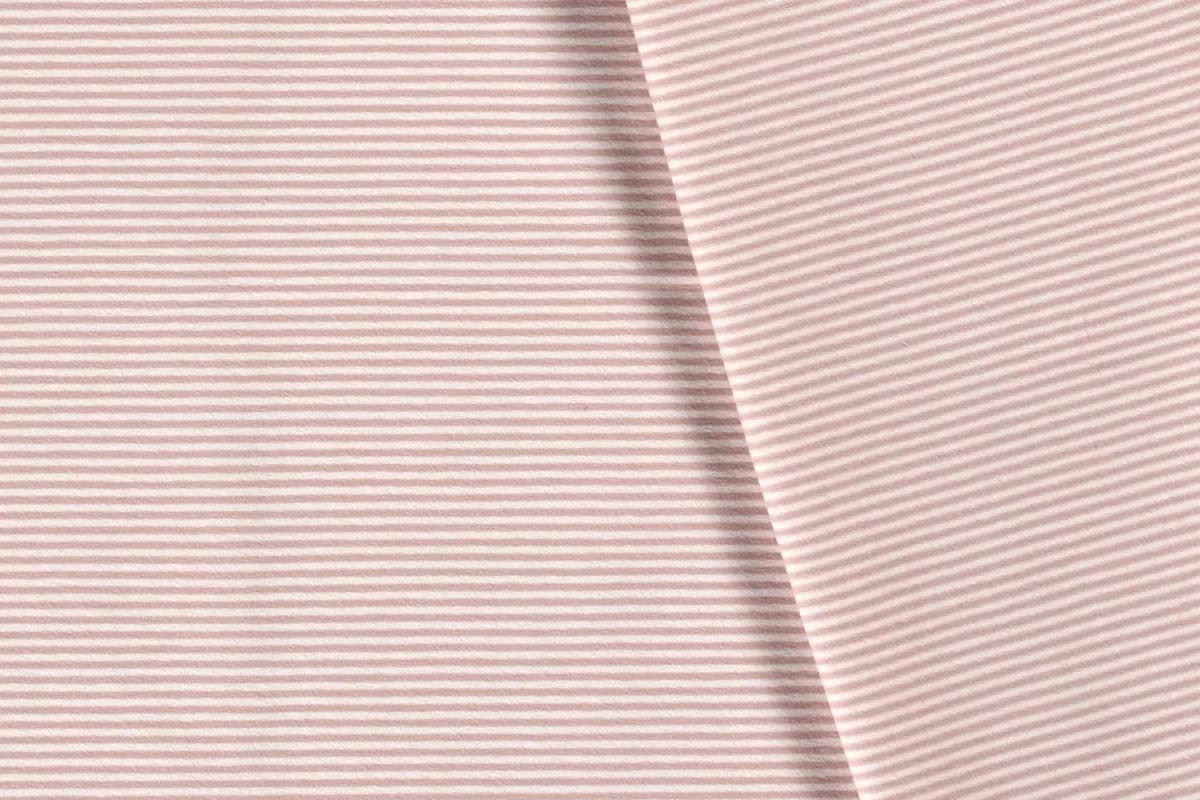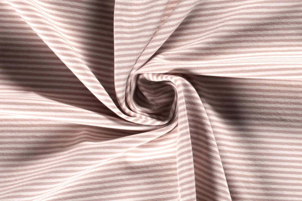 Tricot katoen stof, fijn streepje, oudroze/wit. Y950
