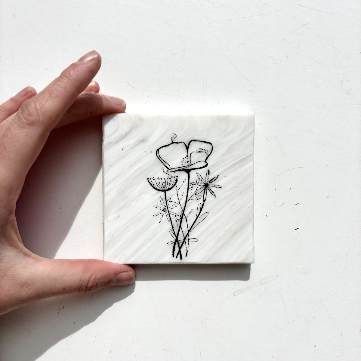 De fine line artworks worden met de hand met acrylmarkers gezet op platen gemaakt van 100% recycled plastic.