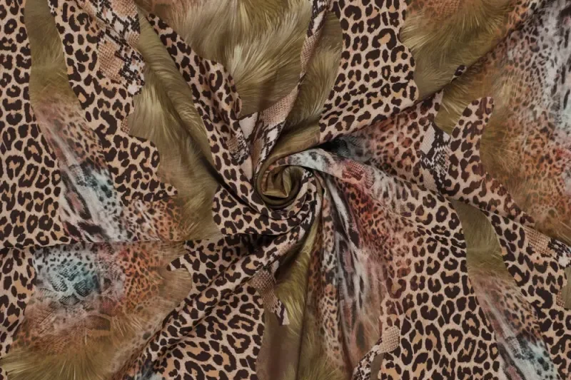 Mooie viscose mousseline stof met een panter- en slangenprint.