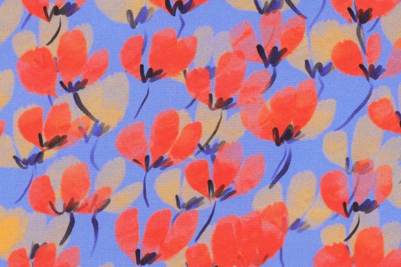 Mooie viscose radiance stof met een digitale print van bloemen.