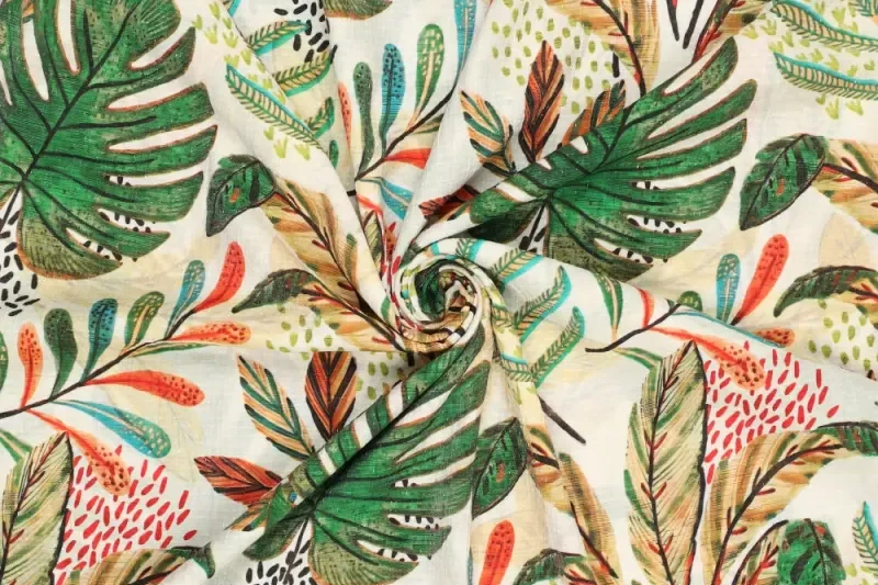 Mooie viscose reliëf stof met een bladerenprint Dolly Livia.
