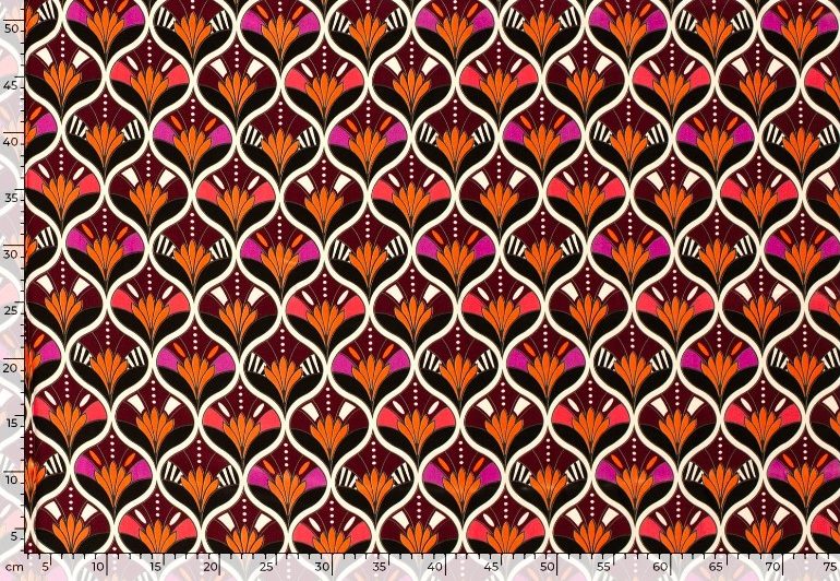 Mooie satijnen viscose stof met een print van lotus bloemen.