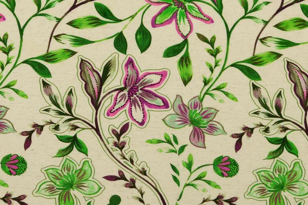Wees de eerste om “Viscose stof, bloemenprint, offwhite/groen/cerise. Y65” te beoordelen