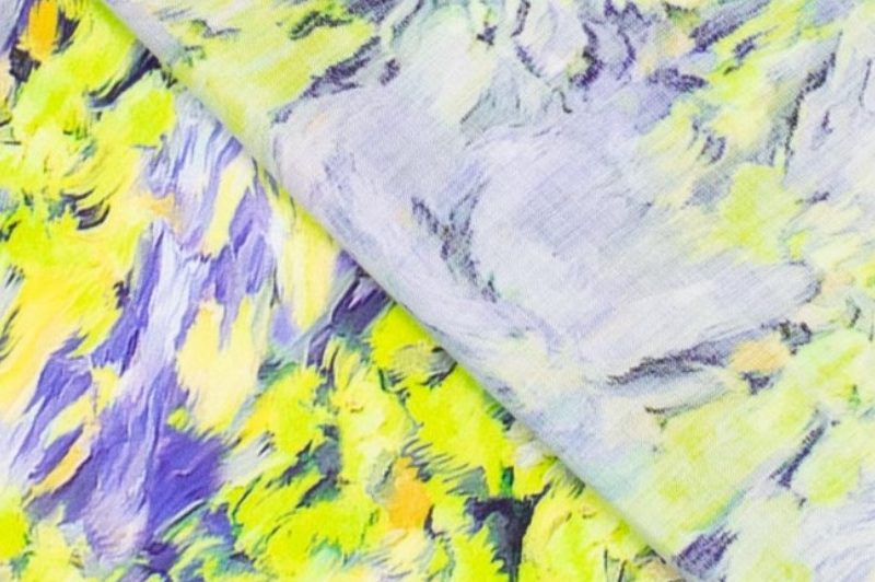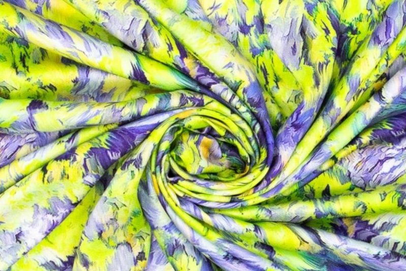 Mooie viscose stof met een satijn zijden look en een digitale print van all-over fantasie.