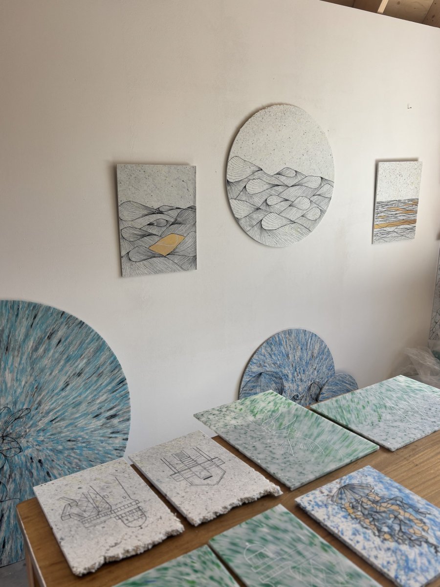 Studio Tosca is geboren in Deventer, maar in 2016 per ongeluk beland op Terschelling. Op Terschelling zijn de gevolgen van het wereldwijde plastic-gebruik goed zichtbaar. Door het zien van al het plastic dat er constant aanspoelt op het eiland is in 2022 de collectie ‘Recycled Lines’ ontstaan: een collectie op 100% recycled plastic.