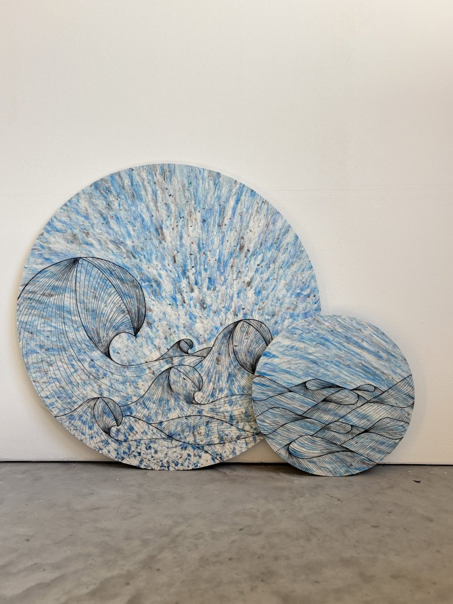 Deze werken zijn gemaakt op 100% recycled plastic en kunnen krasjes, butjes en onregelmatigheden vertonen. Stuur een berichtje voor een close-up!